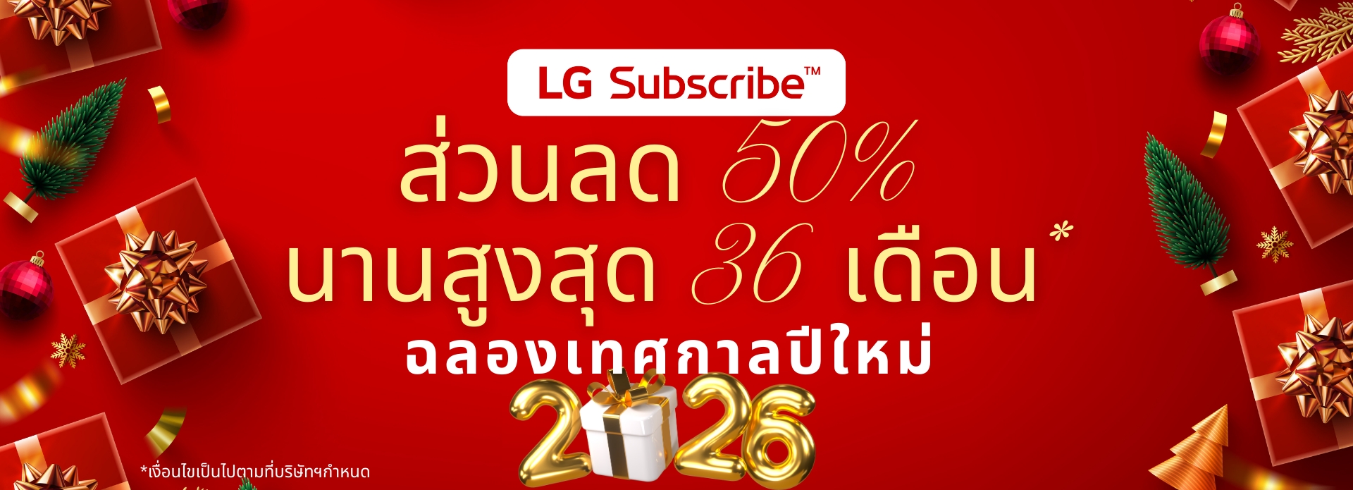 ซื้อ 1 ได้ถึง 3 ได้สินค้าคุณภาพแบรนด์ระดับโลก ได้ประกันเครื่องเพิ่มสูงสุดถึง 7 ปี ได้ผู้เชียวชาญบำรุงซ่อมแซมที่ไปบริการคุณถึงบ้าน โดยไม่มีค่าใช้จ่ายเพิ่มเติม** เงื่อนไขเป็นไปตามที่บริษัทกำหนด ที่นอกเหนือจากค่ารายเดือน ไม่มีที่ใหนให้คุณได้มากกว่าที่เรา LG Subscribe ผ่อนจ่ายรายเดือน ที่สุดของความคุ้มในระยะยาว..