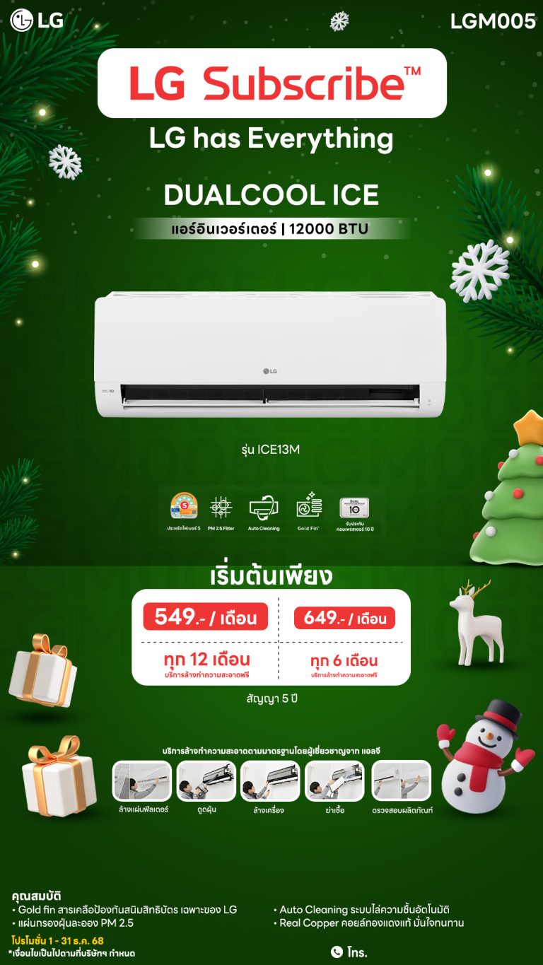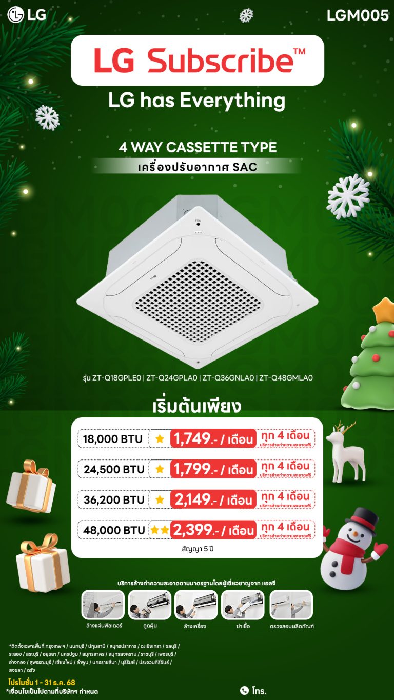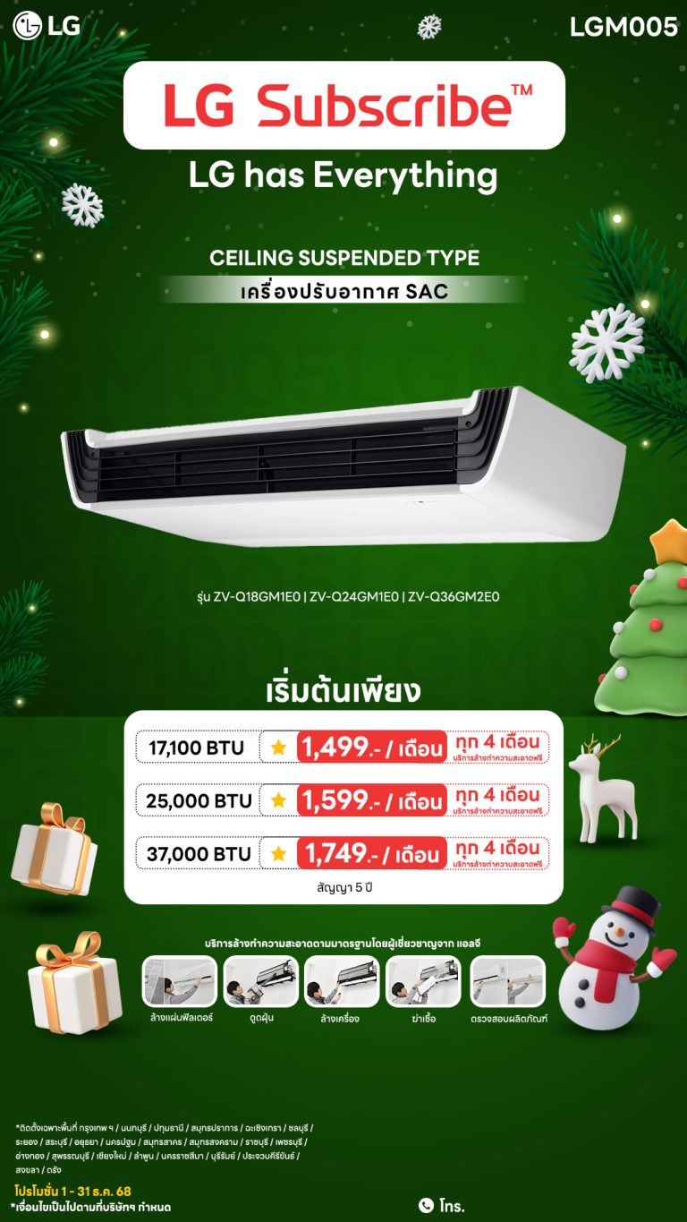 ซื้อ 1 ได้ถึง 3 ได้สินค้าคุณภาพแบรนด์ระดับโลก ได้ประกันเครื่องเพิ่มสูงสุดถึง 7 ปี ได้ผู้เชียวชาญบำรุงซ่อมแซมที่ไปบริการคุณถึงบ้าน โดยไม่มีค่าใช้จ่ายเพิ่มเติม** เงื่อนไขเป็นไปตามที่บริษัทกำหนด ที่นอกเหนือจากค่ารายเดือน ไม่มีที่ใหนให้คุณได้มากกว่าที่เรา LG Subscribe ผ่อนจ่ายรายเดือน ที่สุดของความคุ้มในระยะยาว..