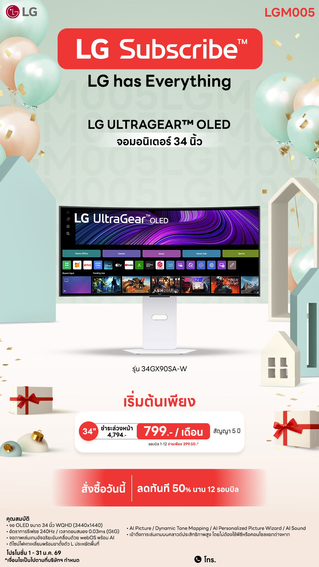 •ล้ำสมัยด้วย webOS Smart, ใช้งานได้เหมือน Smart TV — สตรีม, เล่นเกมคลาวด์ โดยไม่ต้องต่อคอม
