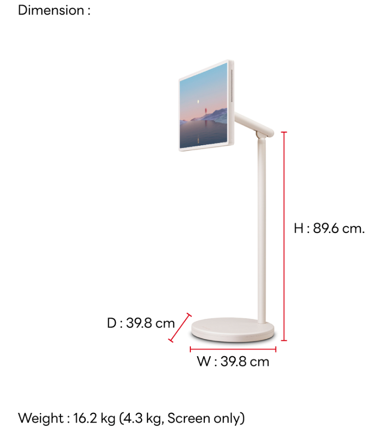 ดีไซน์ & การเคลื่อนย้าย ขาตั้งล้อ + ซ่อนล้อในตัว คุณสามารถลากจอไปยังมุมต่าง ๆ ของบ้านได้โดยไม่ต้องถือ หรือเดินสายยุ่งยาก