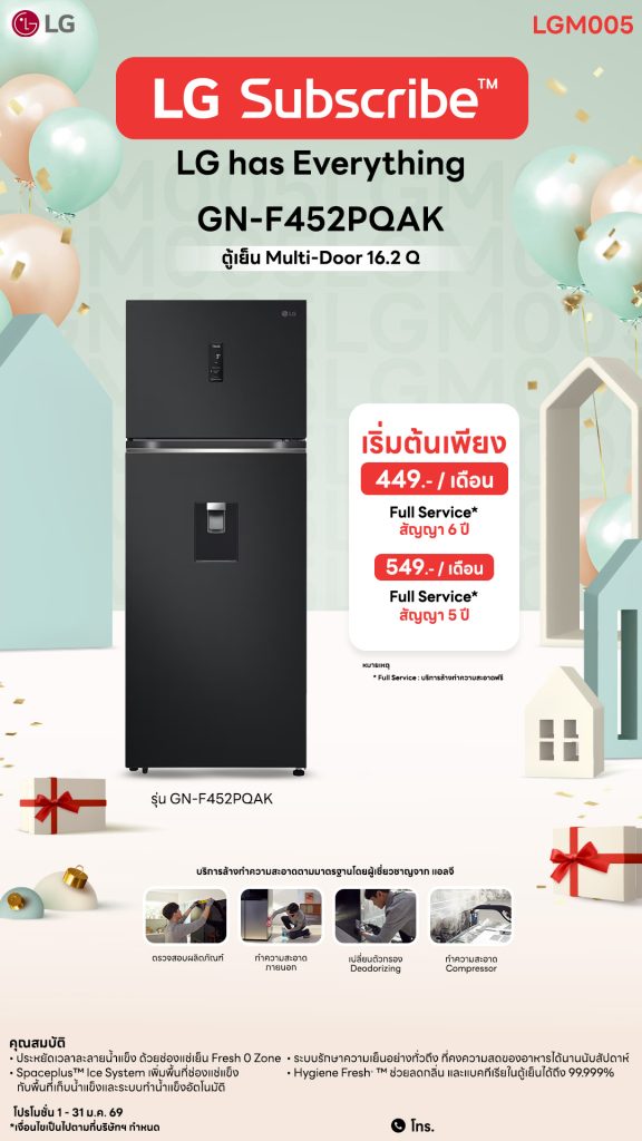 นี่คือรีวิวจุดเด่นของ ตู้เย็น LG 2 ประตู ขนาด 16.2 คิว รุ่น GN‑F452PQAK (ประมาณ 493 ลิตร) ที่ขับเคลื่อนด้วยระบบ Smart Inverter: