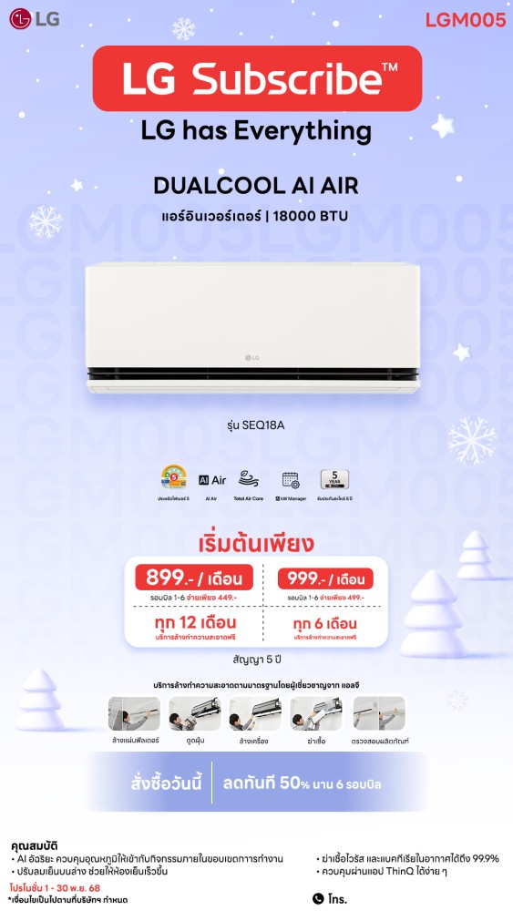 LG DUALCOOL SEQ AI Air 2025 รุ่นใหม่ล่าสุด